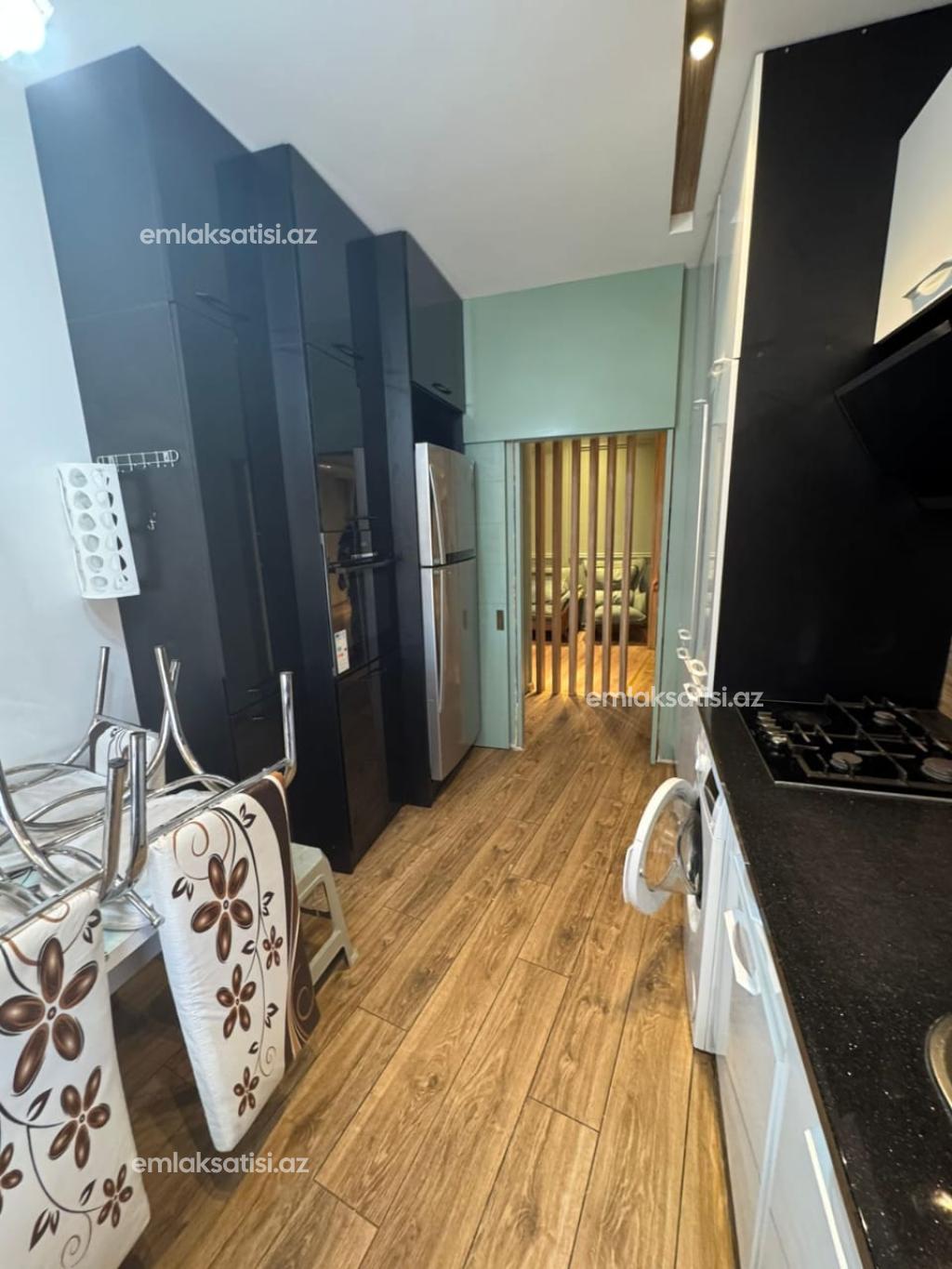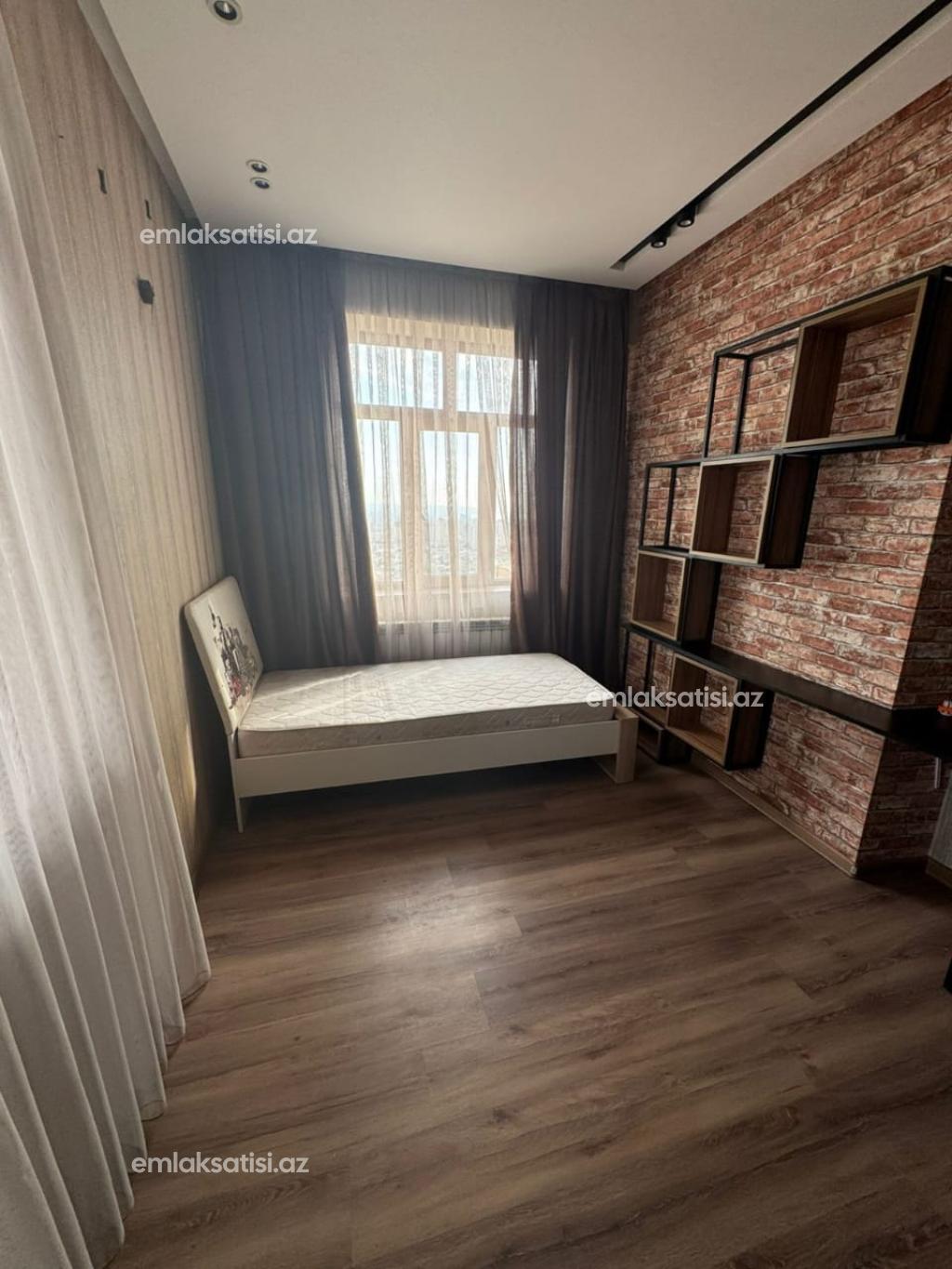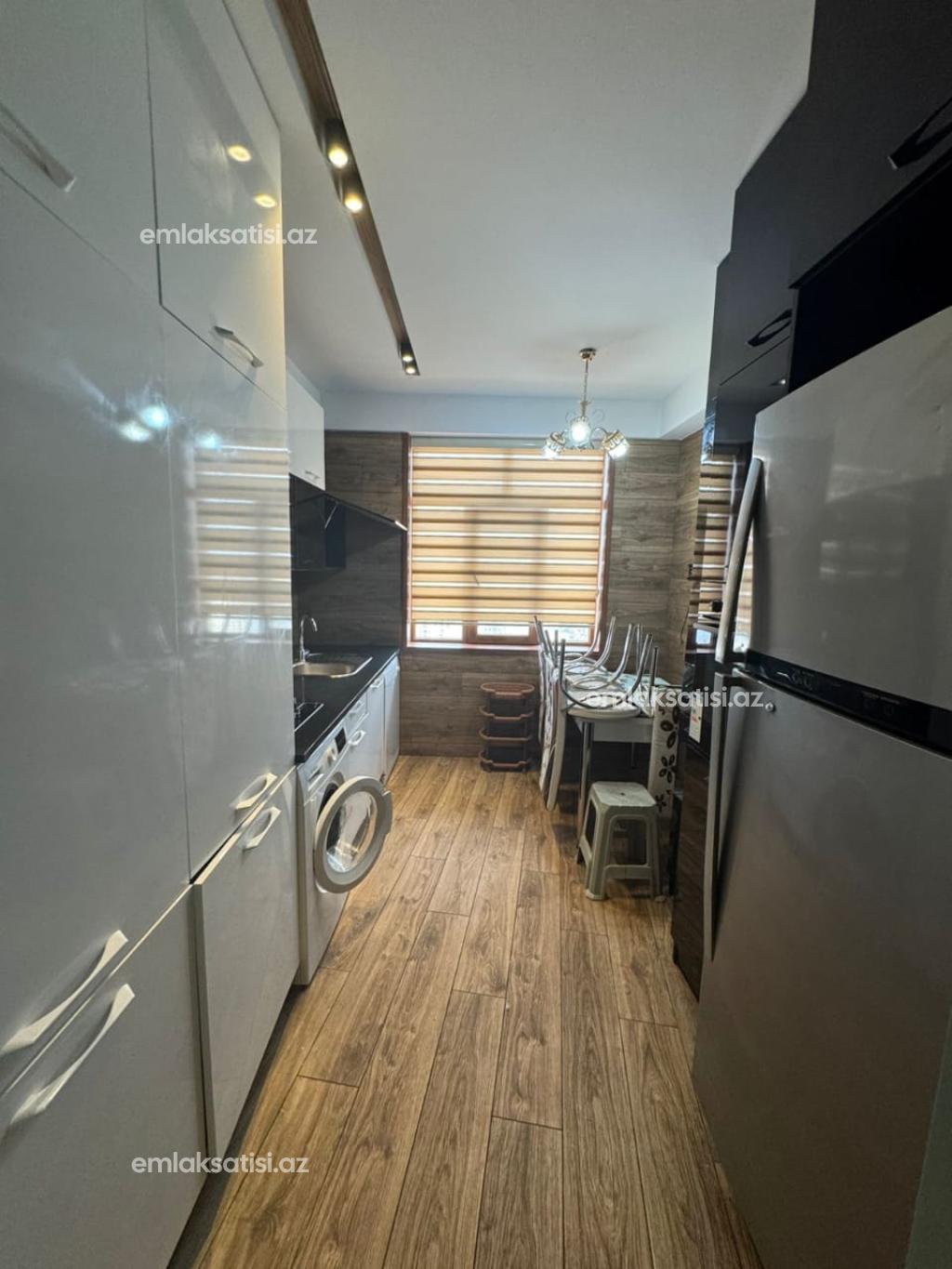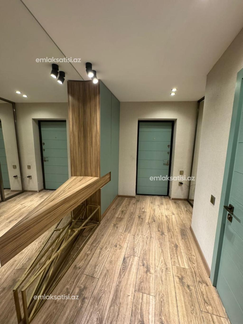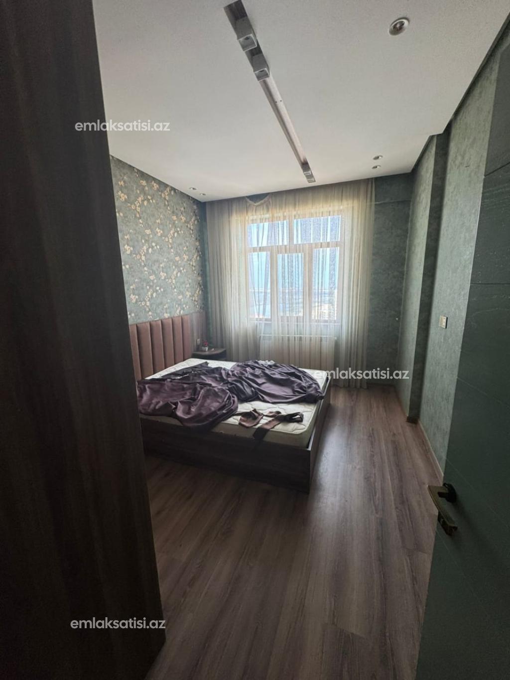 Продаётся 3-комнатная квартира площадью 97 квадратных метров с полным ремонтом на 21-ом этаже 21-этажного дома в Mega Sity Mtk, рядом с детским садом в Ени Ясамале.